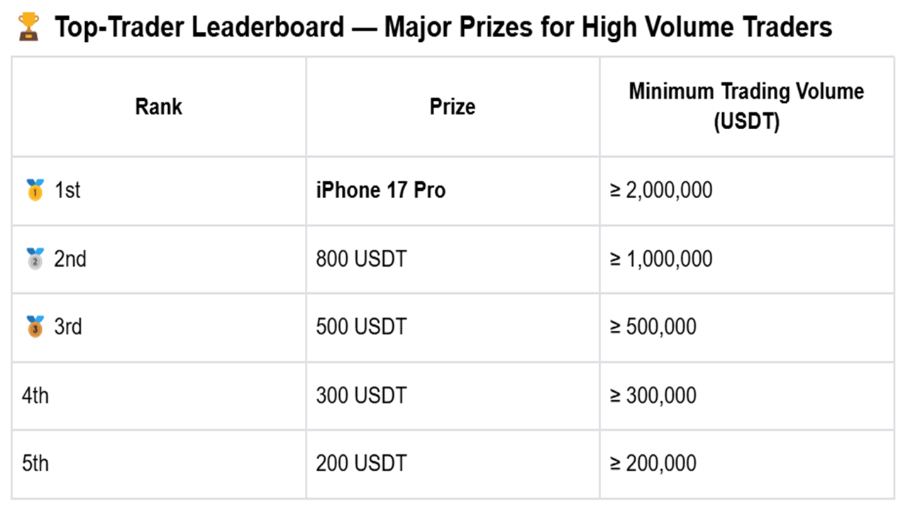 Win iPhone 17 Pro, Gold Bars & Share a 10,000 USDT Prize Pool